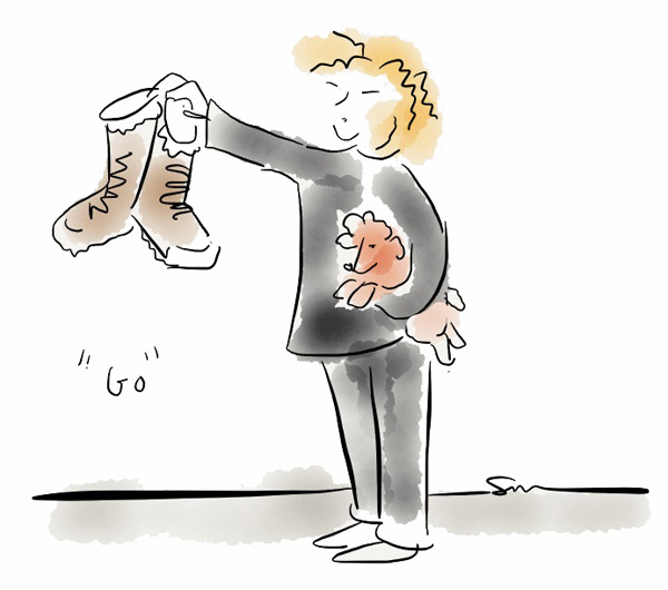 He asked for his snow boots and a bag to put them in.