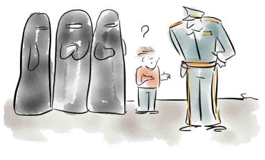 The second one had to do with some kid getting lost in the supermarket and not knowing what his mother looks like because she was wearing a chador ( he just loves the stereotype gags and none better than Islamic)