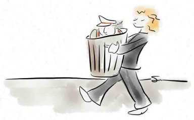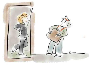 Usually he looks up, frowns and goes back to reading his paper as I walk in (he uses the term “bust in” but I don’t let it bother me).
