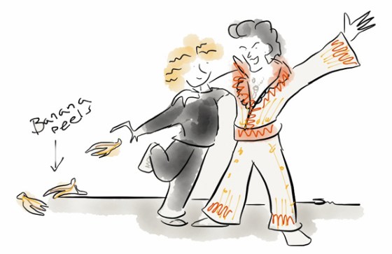 Now I look at every couple as having one foot in the divorce court and the other on a banana peel.