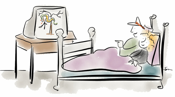 A few days later David spent the night in the hospital. I don’t remember if it was a broken foot or heart palpitations or what but whatever it was, he was looking very pale and pathetic in his bathrobe sitting in his living room.