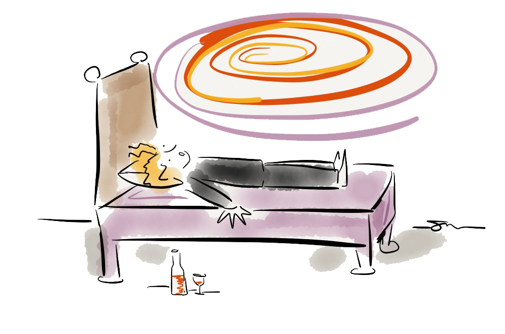 Only after the waiter had returned 3 more times to ask if he could remove her plate and each time she shook her head no while continuing her conversation and not making a move towards downing that last morsel, did I realize that I had to say something or we’d never get out of there and it was only minutes before my head would fall down on the crumb laden table in a deep sleep.