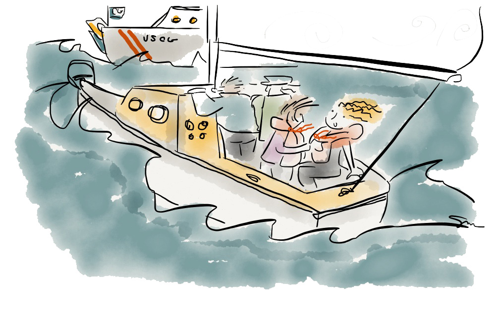 A bad storm was brewing and none of us knew much about sailing at that time but when the coast guard came by and asked if we needed help, Bernie said we were fine.
